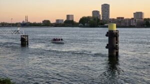 Onze boten liggen midden in Rotterdam, tegenover het Maritiem Museum aan de Jufferkade. We trainen het hele jaar door op de Nieuwe Maas, van de Heijplaat tot de Van Brienenoordbrug — een dynamisch stuk water waar geen training hetzelfde is.